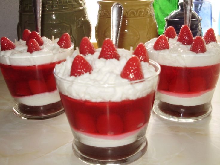 Uma sobremesa leve e refrescante composta por camadas harmoniosas de gelatina de morango, creme suave e natas batidas. Finalizada com morangos frescos, combina frescura e doçura na medida certa. Ideal para festas, eventos ou para quem procura uma sobremesa delicada e visualmente apelativa.